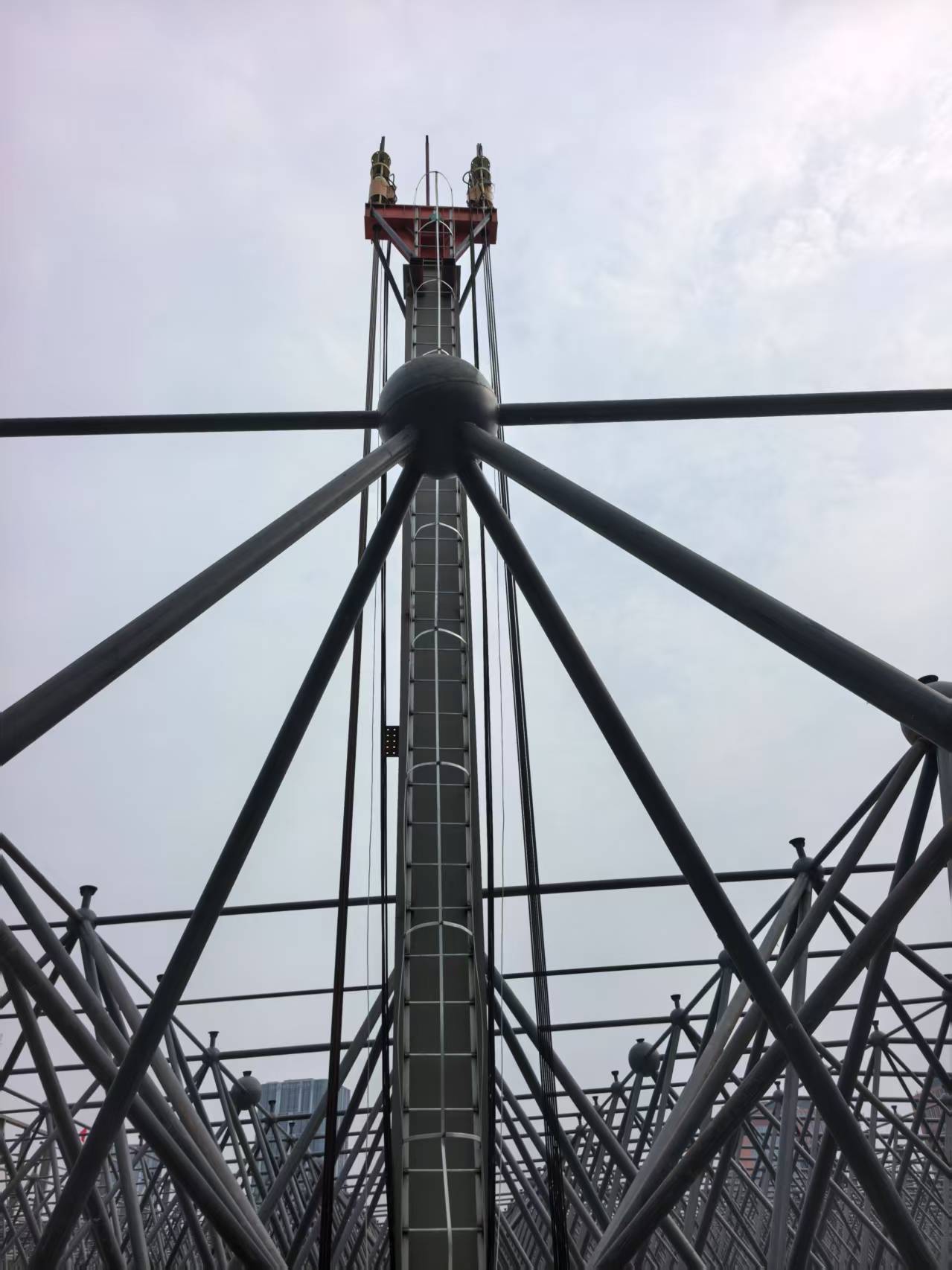 正在建設機庫,是長度205米,跨度96米,鋼結構屋蓋提升總用鋼量1000余噸,本次整體提升網架設置了7個泵站、26個提升點位,采用電腦全程同步控制提升。29天圓滿完成了項目的拼裝、焊接、提升任務。